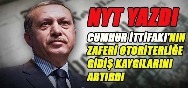 ABD’de yayımlanan New York Times (NYT) gazetesi, 24 Haziran seçimlerine ilişkin başyazısında AKP'li Cumhurbaşkanı Tayyip Erdoğan ve Cumhur İttifakı’nın zaferinin Türkiye’de otoriterliğe gidiş konusunda kaygıları arttırdığını öne sürdü. “Erdoğan Türk demokrasisini henüz öldürmedi” başlıklı yazıda, 2028 yılına kadar iktidarda kalma olasılığı bulunan Cumhurbaşkanı Erdoğan’ın modern bir Osmanlı sultanı olma planları olduğu ve “tek adam yönetiminin ortaya çıkaracağı sorunlarla daha yıllarca uğraşmak zorunda kalınabileceği” savunuldu.