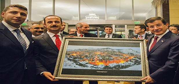 İşadamı Kulaksız tarafından Başbakan Davutoğlu'na Gümüşhane portresi hediye edildi