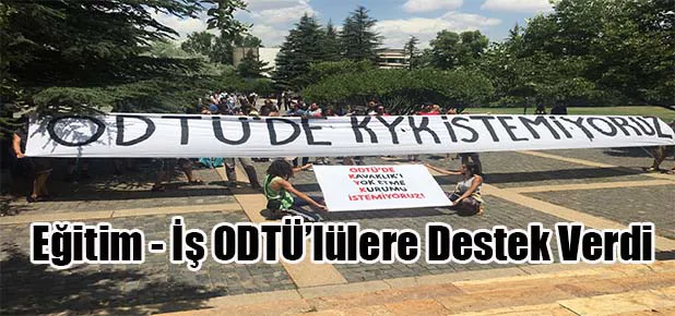 Eğitim - İş olarak bu haklı eylemliliklerinde her zaman ODTÜ’lülerin yanında olacağımızı herkesin bilmesini istiyoruz. Bugün kendini çok açık bir şekilde hissettiren faşizme karşı saflarımızı sıklaştırarak omuz omuza mücadele etme gereğinin ne kadar önemli olduğunun bir kez daha altını çiziyoruz.’