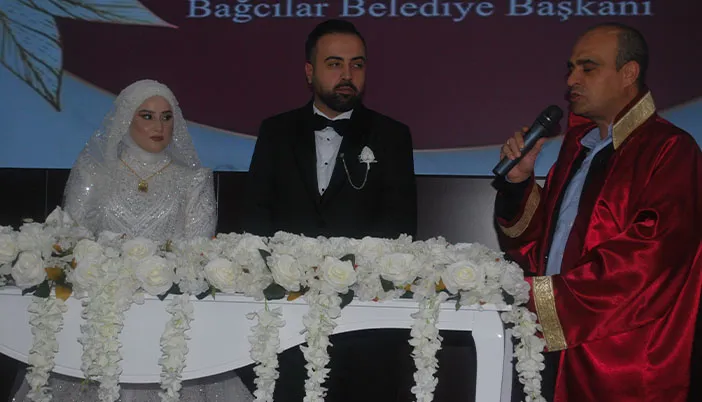 Gelincik 1 Salonu’nda gerçekleşen törende genç çift, alkışlar eşliğinde salona giriş yaptı. Nikah akitlerini Bağcılar Belediye Başkanı adına Nikah Memuru Muharrem Erdal kıyarken, çiftin “Evet” cevabı salonda alkışlarla karşılandı.
