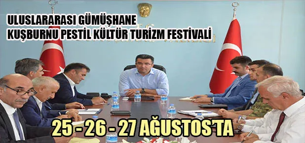 Uluslararası Gümüşhane Kuşburnu - Pestil-Kültür ve Turizm Festivali 25 – 26 - 27 Ağustos tarihleri arasında düzenlenecek. Festival için hazırlık toplantısı, Gümüşhane Valisi Okay Memiş’in başkanlığında gerçekleştirildi.