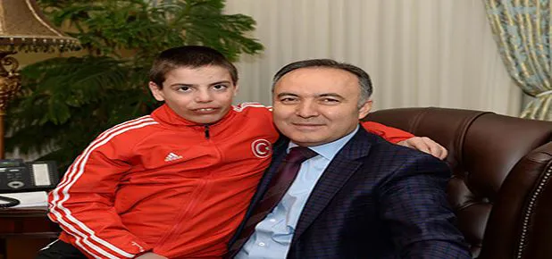 Tüm engellere karşı, şampiyonluk yolunda bütün engelleri aşan, azmin mimarları minik sporcular Aliye Zeynep ve Muhsin Murat Bingül, şampiyonluk sevincini Vali Dr. Ahmet Altıparmak’la yaşadılar.