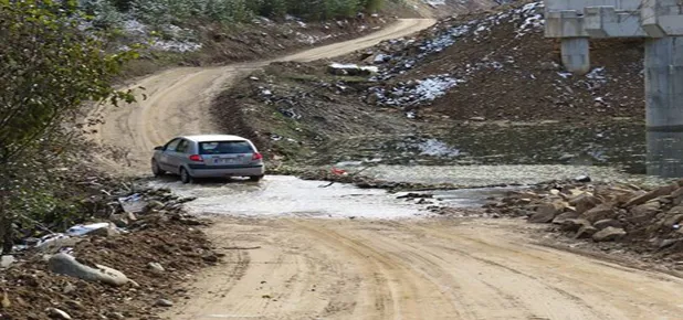 Kocadal Köyü Kalis Mahallesinde mevcut köprü ayaklarının hemen yanından ulaşımı sağlayan stabilize yolu sel bastı.
