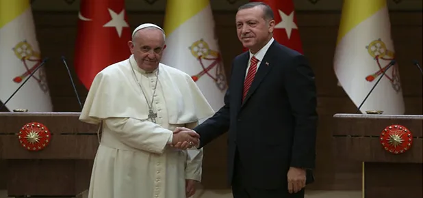 Barda fedailik yapan, futbol tutkunu Papa Francesco önce Ankara, sonra İstanbul’a geldi. Devletin en üst düzeyinde tartışmalı Ak Saray’da karşılandı.Yoluna turkuvaz halılar döşendi