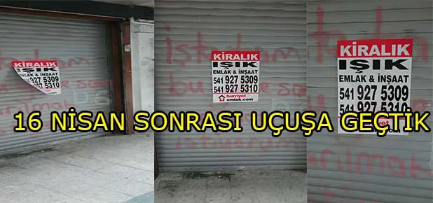 Türkiye uçuşa geçecek sözü sık sık referandum meydanlarında halka karşı sarfedildi. Oysa İstanbul’un en işlek caddesi İstiklal’de görülen kiralık yazıları ise işin gerçeğinin böyle olmadığını gözler önüne seriyor. Devasa şehir İstanbul’un en gözde mekânlarından biri olan dev cadde de sık sık görmeye alışılan kiralık ibareleri hükümet kanadından gelen açıklamaların aksine ülke ekonomisinde olup biten tüm gerçeği ortaya koyuyor