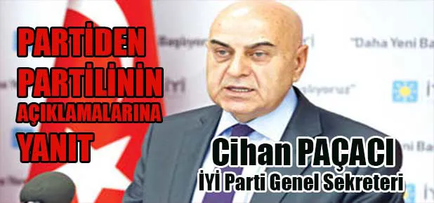 Genel Sekreter Paçacı, Nuhoğlu’nun Mersin şehri seçim sonuçlarıyla ilgili olarak yaptığı değerlendirmelerine, ‘Mersin şehrinde son anda aday olarak gösterilemeyen Başkanlık Divanı üyemiz Sayın Hayrettin Nuhoğlu’nun, seçim sonuçlarıyla ilgili Twitter üzerinden yaptığı değerlendirme sosyal medyada özellikle Mersin özelinde tartışma konusu olmuştur. Millet İttifakı’nın başarısını anlatmak isterken, Sayın Genel Başkan Yardımcımızın maksadını aşan ifadeleri, partimizin görüş ve düşüncelerini yansıtmamaktadır. İYİ Parti’nin 31 Mart Yerel seçimlerinde Mersin’deki tavrı ve çabası milletimiz tarafından açık ve net olarak bilinmektedir.’ Şeklinde karşılık verdi