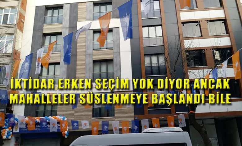 Adalet ve Kalkınma Partisi ile Milliyetçi Hareket Partisi'nin oluşturduğu Cumhur ittifakı ''erken seçim yok, seçimler zamanında yapılacak'' açıklamasını sıklıkla vurguluyor. Açıklamaların aksine mahallelerin dili ise Cumhur ittifakının söylemleriyle uyuşmuyor gibi görünüyor. Son yerel seçimlerde iki kez ağır yenilgi alan Cumhur ittifakı bir türlü aklından çıkartamadığı İstanbul'a bu bakımdan büyük önem verirken hazırlıkların yavaş yavaşta olsa sokaklara yansıdığı görülüyor. İstanbul'un kalabalık ilçelerinden bir tanesi olan Gaziosmanpaşa'ya bağlı Yıldıztabya Mahallesinde yer alan iletişim bürosu önündeki parti bayrakları erken seçim iddialarını kuvvetlendiriyor..