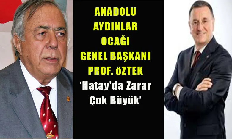 Anadolu Aydınlar Ocağı Genel Başkanı Prof. Dr. İbrahim Öztek, Merkez üssü Kahramanmaraş olan sarsıcı depremin en çok etkilendiği şehirlerarasında bulunan Hatay’ın Büyükşehir Belediye Başkanı Doç. Dr. Lütfü Savaş’ı arayarak geçmiş olsun mesajını iletti.