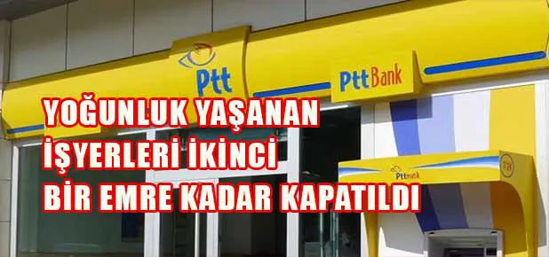 Aile Çalışma ve Sosyal Hizmetler Bakanlığı tarafından Ekonomik İstikrar Kalkanı Paketi Destek Programı çerçevesinde gerçekleştirilen sosyal yardım ödemeleri sürecinde bazı PTT iş yerlerimizde yaşanan yoğunluğun, çalışma arkadaşlarımız ve siz değerli müşterilerimizin koronavirüs hastalığı karşısında sağlığını tehlikeye düşürmemesi amacıyla 03.04.2020 tarihinden itibaren;