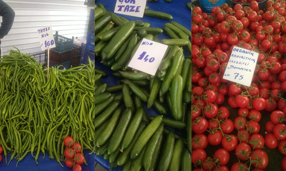 Ramazan ayının ilk günlerinde semt pazarlarında oluşan fiyatlar cep yakıyor. Tezgahlarda en çok aranan ürünlerden salatalık 140 TL'den, tatlı kıl biber 160 TL'den, kabak 140 TL'den, domates 75 TL'den, yeşil biber ise 80 TL'den satışa sunuldu.