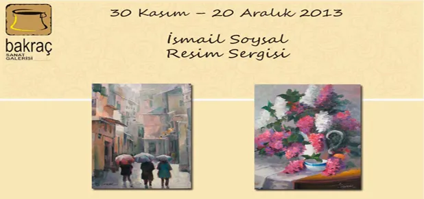 Gümüşhaneli Ressam İsmail F. Soysal’ın Resim Sergisi 30 Kasım - 20 Aralık. 2013 tarihleri arasında Bakraç Sanat Galerisinde sanatseverlerle buluşacak.