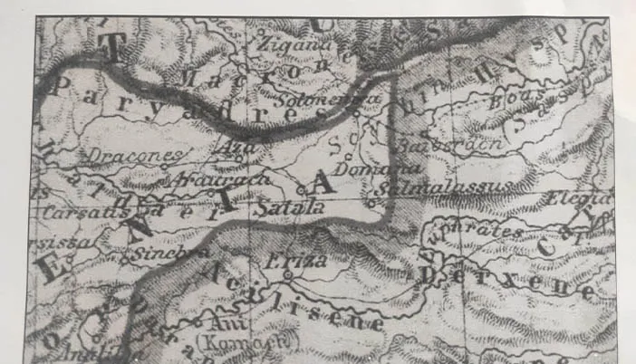 Harita üzerinde beldenin bulunduğu konumdan geçen kalın çizgiler ise dönemin siyasi sınırlarını temsil ediyor. Bu sınırların, antik çağda Macronlar ile Scythianlar (İskitler) arasındaki hâkimiyet alanlarını ayırdığı değerlendiriliyor.