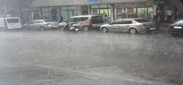 Gökgürültülü sağanak yağış bir ara yerini iri taneli doluya dönüştürdü. Özellikle trafik felç olurken araçlar uzun kuyruklar oluşturdu.