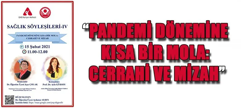 Çevrim içi olarak düzenlenen ve üniversite Youtube kanalı üzerinden de canlı olarak yayınlanan programın moderatörü Dr. Öğr. Üyesi Ayşe Çolak, “Bilindiği gibi Avrupa Ameliyathane Hemşireleri Derneği 2006 yılında cerrahi ve ameliyathane hemşirelerinin yaptıkları işleri daha görünür kılabilmek için 15 Şubat’ı Avrupa Cerrahi ve Ameliyathane Hemşireleri Günü olarak kutlamaya başladı. Avrupa Cerrahi ve Ameliyathane Hemşireleri Günü ülkemizde de 2010 yılından itibaren her yıl bir konu başlığı belirlenerek çeşitli etkinliklerle kutlanmaktadır. Biz de Sağlık Söyleşilerinin dördüncüsü olan Pandemi Dönemine Kısa Bir Mola: Cerrahi ve Mizah konusuyla Antalya Bilim Üniversitesi Sağlık Bilimleri Fakültesi Hemşirelik Bölüm Başkanı Prof. Dr. Ayla Gürsoy hocamızla birlikte işleyeceğiz.” sözlerine yer verdi.