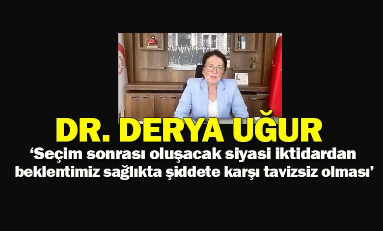 Genel Sağlık - İş Genel Başkanı Dr. Derya Uğur, ‘Seçimler sonrası oluşacak siyasi iktidarın beklentimiz sağlıkta şiddete karşı tavizsiz olmasıdır’ dedi.