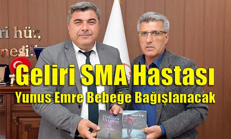 Şairin yeni çıkan ikinci şiir kitabı “Umut Dağı”nı Milli Eğitim Müdürü Sünnetci’ye hediye den Yapar,  kitabının tüm gelirini SMA hastası Yunus Emre Kaçan bebeğe bağışladı.