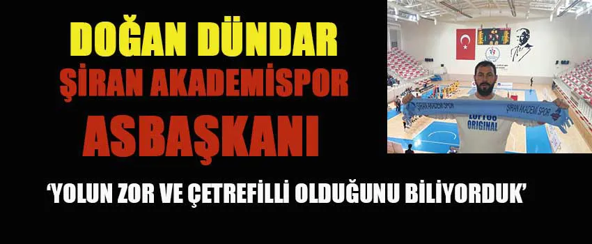 Şampiyon Şiran Akademirspor'un başarı hikayesini anlatan Dündar, ''Çıktığımız bu yolun ne kadar zor ve çetrefilli olduğunu biliyorduk ama yönetim olarak çok özverili çalıştık. Tecrübeli hocamız Ümit Terzi yönetiminde genç dinamik, disiplinli bir o kadarda mütevazi bir takım kurduk. Önce yönetim olarak biz inandık, sporcularımız inandı, Şiran inandı ve sonunda kupayı kaldırdık. Şiran, tarihinde profesyonel liglerde ilk defa 1.lige yükseldi. Bu gurur Şiran’ın bu gurur bütün Gümüşhane’nin. Maddi manevi desteğini esirgemeyen bütün hemşehrilerimize canı gönülden teşekkür ederiz.''