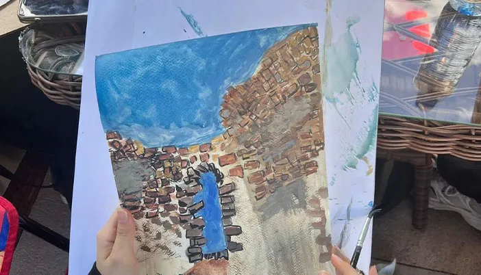 Görsel sanatların farklı tekniklerinin uygulandığı etkinlikte öğrenciler, Gümüşhane’nin mimari mirasını ve doğal güzelliklerini tuvallerine yansıttı.