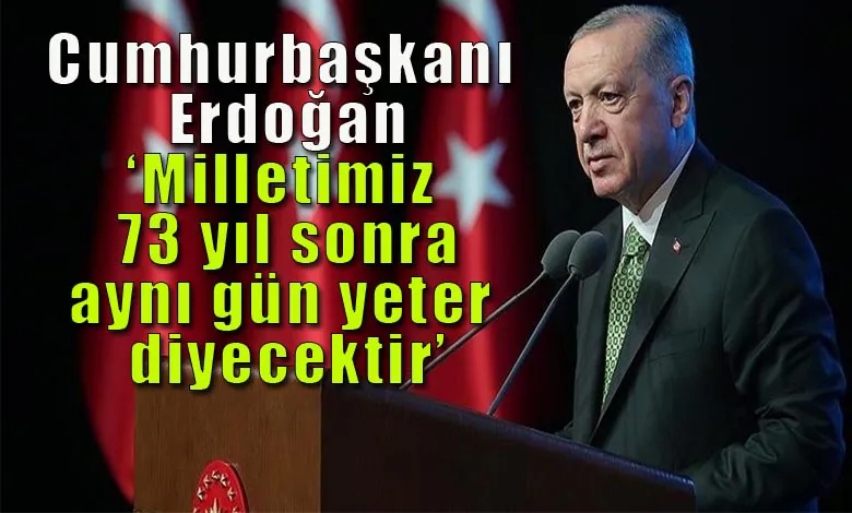“Rahmetli Menderes, 14 Mayıs 1950’de “yeter, söz milletindir” diyerek seçime girmiş ve büyük bir zaferle çıkmıştır. Milletimiz 73 yıl sonra aynı gün ‘yeter’ diyecektir. Söz de karar da milletindir diyerek 2023’te milletimizin desteğine talibiz. Sözü de kararı da geleceğini de millete bırakmak istemeyenlere rağmen Türkiye Yüzyılı’nı başlatacağız”