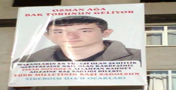 Tirebolu Ülkü Ocakları şehit erin cenazesini daha önce bir bina üzerine astıkları üzerinde, 'Osman Ağa bak torunun geliyor.' Makamların en yücesi şehitlik mertebesine nail olan kardeşimiz Yaşar Doymuş'a Allah'tan rahmet, ailesine baş sağlığı dileriz. Türk Milletinin başı sağolsun' yazılı pankartla karşıladılar.
