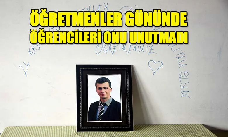 Necmettin öğretmenin fotoğrafını koydukları masasının etrafına gül bırakan öğrenciler, sınıf tahtasına ‘24 Kasım Öğretmenler Günü'nüz kutlu olsun, Necmettin öğretmenimiz’ yazdı.