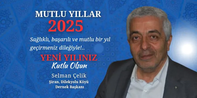 Yeni yılın başta köyümüz olmak üzere tüm Şiran’a, ülkemize ve dünyaya sağlık, huzur ve mutluluk getirmesini diliyorum. 2025 yılının birlik ve dayanışma içinde geçeceği güzel bir yıl olmasını temenni ediyorum.
