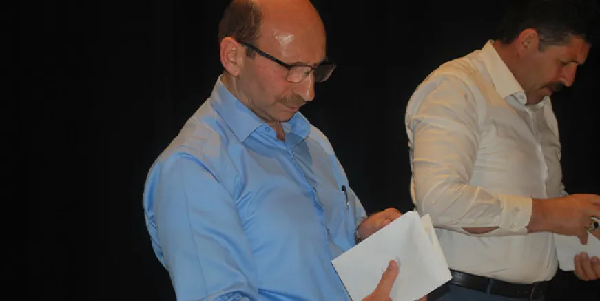Gümüşhane İli ve İlçeleri Yardımlaşma ve Kalkındırma Derneği Başkanı Tahsin Söğüt 20’şerli hale getirdiği zarfları ve oy pusulalarını büyük bir dikkatle saydı