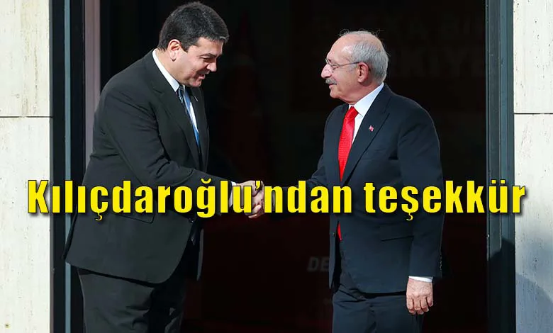 Cumhuriyet Halk Partisi Genel Başkanı Kemal Kılıçdaroğlundan teşekkür. Altılı masaya dokuzuncu buluşma da evsahipliği yapan Demokrat Partinin Genel Başkanı Gültekin Uysal'e teşekkür ederken, sosyal medya hesabından şunları yazdı: