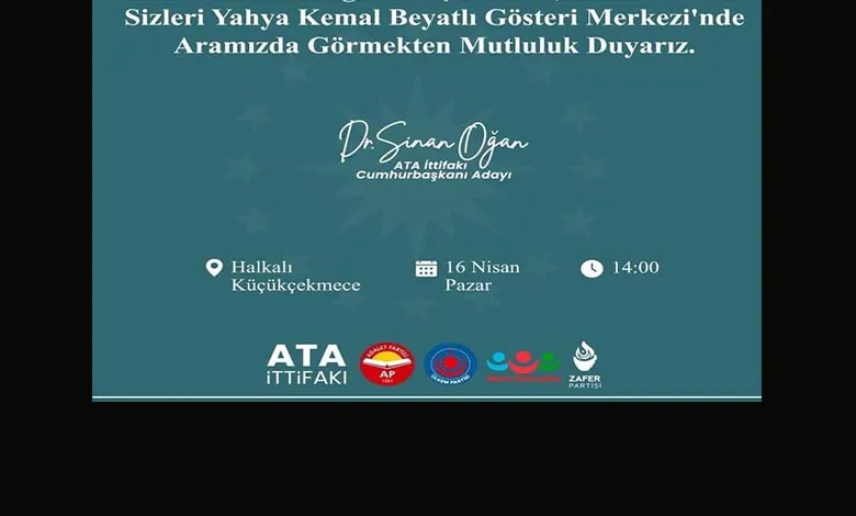 Türk Milletinin yegâne adayı #SinanOgan yarın 16 Nisan 2023 Pazar günü saat 14.00'de Küçükçekmece Yahya Kemal Beyatlı Kültür Merkezinde İstanbullular ile buluşuyor...