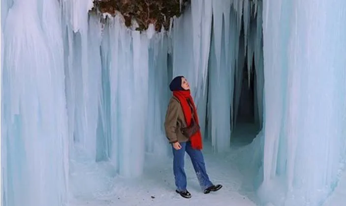 Sırakayalar Şelalesi Buz Tuttu, Ziyaretçi Akınına Uğradı