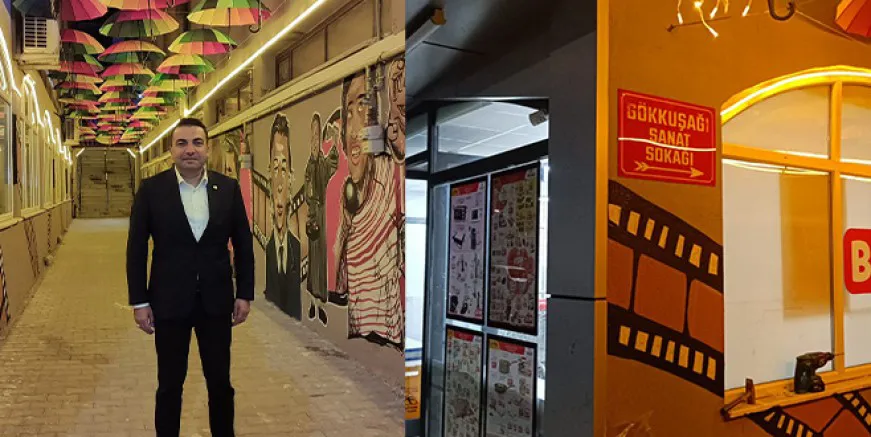 Gökkuşağı sanat sokağı adı verilen sokakta çalışmalar 3/40 metre kare içerisinde yer aldıı. Sokak duvar ve etrafının farklı görsellerle süslendiği görülürken Türk sinemasının unutulmaz isimleri Kemal Sunal, Adile Naşit Münir Özkul’un resimlerinin de yer aldığı görüldü.