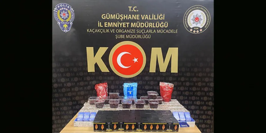 Şiran Cumhuriyet Başsavcılığı koordinesinde, İl Emniyet Müdürlüğü Kaçakçılık ve Organize Suçlarla Mücadele Şube Müdürlüğü 5607 Sayılı Kaçakçılıkla Mücadele Kanunu kapsamında yürütülen çalışmada; 31 Ekim tarihinde Gümüşhane Şiran İlçesinde; iş yerinde yapılan aramada B.T. ve O.K. isimli şahıslardan 14.920 adet tütünle doldurulmuş makaron, 7 kg kaçak nargile tütünü ele geçirilmiş olup şahıslar hakkında adli işlemlere başlanıldı