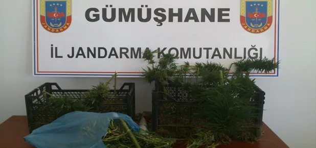 Şiran ilçesinde İl Jandarma Komutanlığı ekipleri tarafından alınan ihbar üzerine yapılan operasyonda kök kenevir bitkisi ve kubar esrar maddesi ele geçirildi.