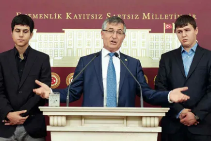 MHP Milletvekili Özcan Yeniçeri, seçilme yaşının 18'e indirilmesine tepki göstererek iki gençle Meclis'te basın toplantısı düzenledi