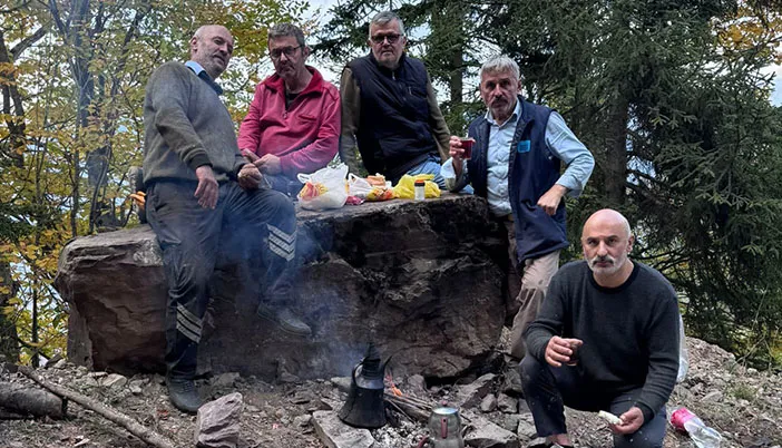 Yazdan kalma bu güzel hafta sonunda köylüler, günün yorgunluğunu kara ibrikte kaynattıkları çayın eşliğinde atıyor. Orman kokusuna karışan taze çay buharı, doğanın sessizliğiyle birleşince ortaya huzur dolu görüntüler çıkıyor.