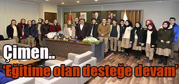 Milli Eğitim Müdür Yardımcıları Mesut Olgun ve İbrahim Taş, Türk Telekom Fen Lisesi Okul Müdürü Mehmet Akif Odabaş ve Müdür yardımcısı Ergin Aslan ile 20 öğrenciyi makamında kabul eden Başkan Çimen, Türk Telekom Fen Lisesini 480 puan üzerinden kazanan ilk 20 öğrenciye burs verdiklerini hatırlattı.