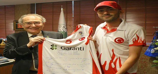 Tekerlekli Sandalye Basketbol Erkek A Milli Takımının fizyoterapisti Mahmut Çalık, spora desteklerinden ötürü Üsküdar Üniversitesi Rektörü Prof. Dr. Nevzat Tarhan’a millilerin imzalı formasını hediye etti. Prof.Dr. Tarhan, Brezilya'nın Rio kentinde 7-18 Eylül tarihlerinde düzenlenecek olan 2016 Rio Paralimpik Oyunları’na katılacak sporculara başarılar diledi.
