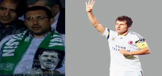 AKP’nin tribünlerde siyaset yasağının yalnızca muhalifler için tasarlandığı anlaşılıyor. Konyaspor-Fenerbahçe maçında, AKP’li Mustafa Akış, Mursi atkısı takarken, Emre Belözoğlu, attığı golün ardından “4” anlamına gelen “Rabia” işareti yaparak Mursi taraftarlarının sembolünü kullandı.