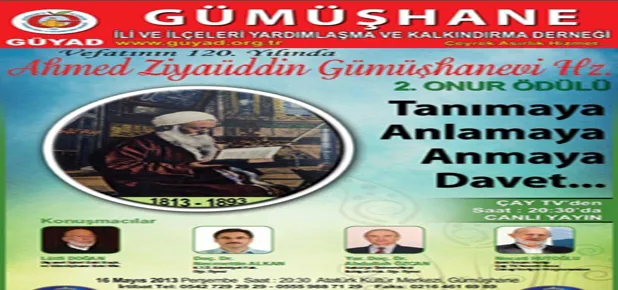 Gümüşhane İli ve İlçeleri Yardımlaşma ve Kalkındırma Derneği (GÜYAD) Gümüşhane’nin önemli isimleri arasında yer alan büyük İslam Büyüğü Ahmet Gümüşhanevi Hazretlerini anacak.
