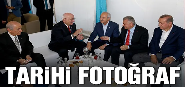 Cumhurbaşkanı Erdoğan mitingin başlamasından önce Başbakan Yıldırım, CHP Genel Başkanı Kılıçdaroğlu, TBMM Başkanı Kahraman, MHP Genel Başkanı Devlet Bahçeli ile bir süre sohbet etti.