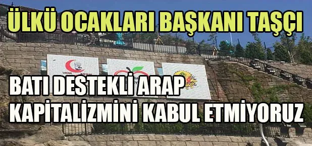 Bu ülkenin teminatı konumunda bulunan Ülkü ocakları ve Türk gençliği olarak bizlere dayatma usulü kabul ettirilmeye çalışılan ve bunu Vatan, Bayrak, Millet, Devlet simgeleri ile özdeşleştiren bu Batı destekli Arap kapitalizmini kabul etmiyoruz.
