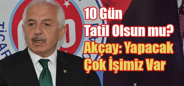 Gümüşhane Ticaret ve Sanayi Odası Başkanı İsmail Akçay, ‘ülke gündeminde bu kadar sorun var, çözümü bekleyen bu kadar iş var mesela bu bankalar neden vergi şampiyonu hiç düşündünüz mü? bunlara kafa yormak varken; 10 gün tatil olsun mu, olmasın mı? tartışmasını gerçekçi bulmuyorum’ dedi.