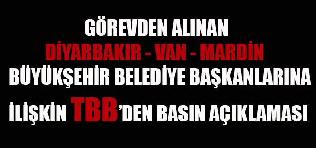 DİYARBAKIR, MARDİN VE VAN BÜYÜKŞEHİR BELEDİYE BAŞKANLARININ GÖREVDEN UZAKLAŞTIRILMASI İŞLEMİNE İLİŞKİN TÜRKİYE BAROLAR BİRLİĞİ’NİN AÇIKLAMASI