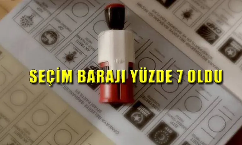 Seçimlerde yüzde 10 olarak uygulanan ülke barajı yüzde 7 oldu. Türkiye Büyük Millet Meclisi (TBMM) Genel Kurulu’nda görüşülmeye başlandı. Seçim Kanunu Teklifi’nin birinci bölümü kabul edildi.