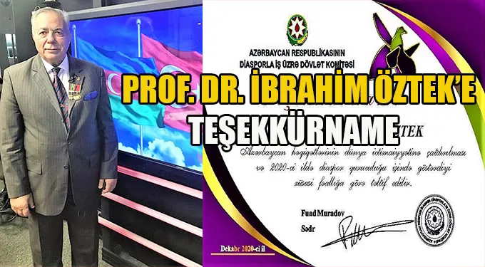 Anadolu Aydınlar Ocağı Genel Başkanı ve Üsküdar Üniversitesi Tıbbi Patoloji Anabilim Dalı Başkanı Prof. Dr. İbrahim Öztek, Azerbaycan Cumhuriyeti Diaspora Devlet Komitesi tarafından Bakan (Sedr) Fuad Muradov imzalı bir “Teşekkürname” ile taltif edildi.