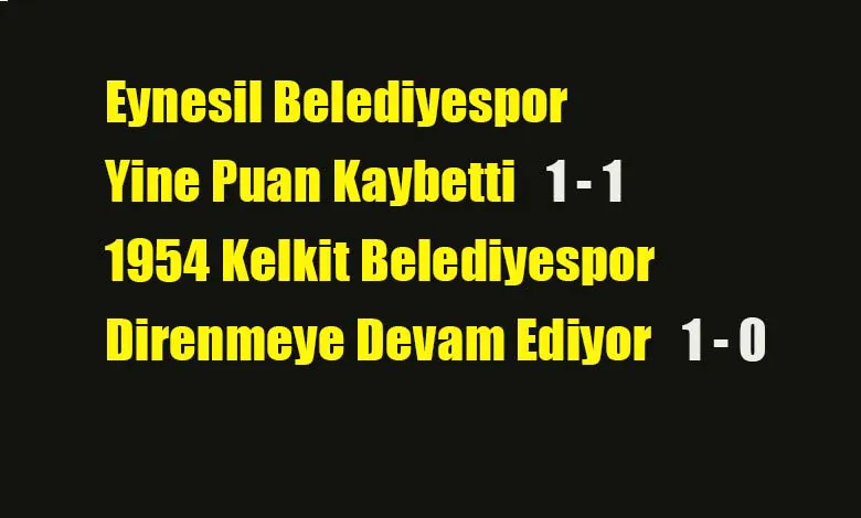 2. Grupta mücadele veren Giresun temsilcisi Eynesil Belediyespor sahasında yine puan kaybetti. Eynesil Belediyespor geçtiğimiz hafta Iğdır FK’ne 8 – 0 gibi açık bir farkla mağlup olmuştu. Eynesil Belediyespor ilk yarısını üstün tamamladığı karşılaşmadan 1 – 1’lik skorla ayrıldı.