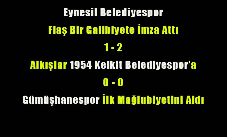 Ligde beşinci hafta sonunda istediği sonuçları bir türlü elde edemeyen Gümüşhanespor ise ilk mağlubiyetini Amber Çay Eynesil Belediyespor karşısında aldı.