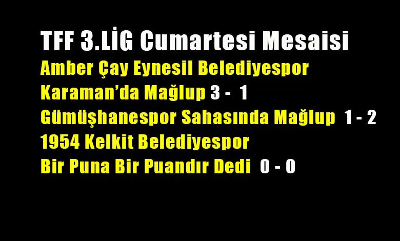Ligde şu ana kadar aldığı sonuçlarla dikkat çeken Amber Çay Eynesil Belediyespor lig de ilk mağlubiyetini lider Karaman Belediyespor karşısında aldı. Giresun emsilcisi mücadeleyi 3 – 1 kaybetti.