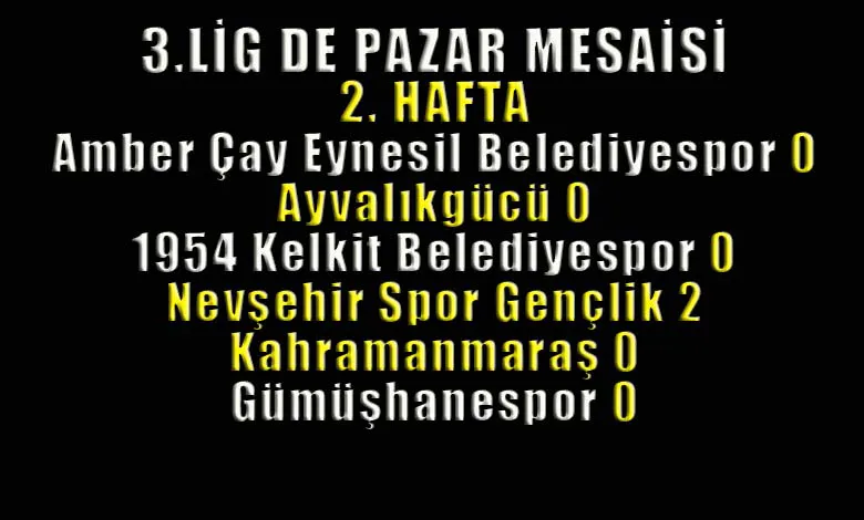 Gümüşhanespor ise Kahramanmaraş ile deplasmanda golsüz berabere kalarak ikinci haftayı da bir puanla tamamladı.