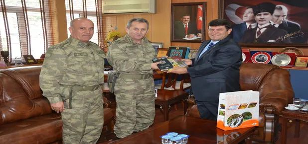 Manisa İl Jandarma Alay Komutanı iken Yüksek Askeri Şura toplantısı sonrası, Tuğgeneralliğe Terfi Ettirilerek Giresun Jandarma Bölge Komutanlığına Atanan Tuğgeneral Mustafa Doğru Vali Dr. Yusuf Mayda’yı ziyaret etti.